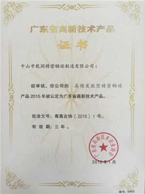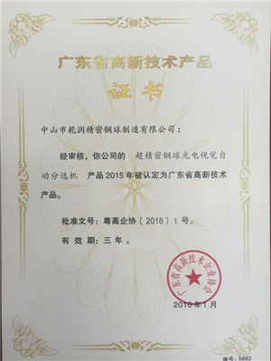 恭賀廣東中山市乾潤(rùn)精密鋼球制造有限公司獲得高新技術(shù)產(chǎn)品證書(shū)