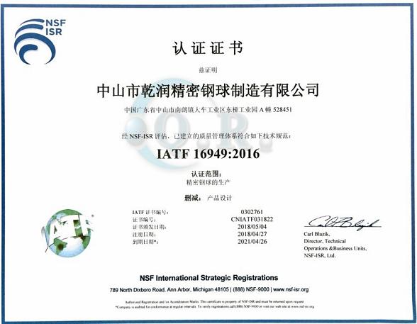 | 中山市乾潤(rùn)精密鋼球制造有限公司ISO/TS16949:2009全新升級(jí) | ||
